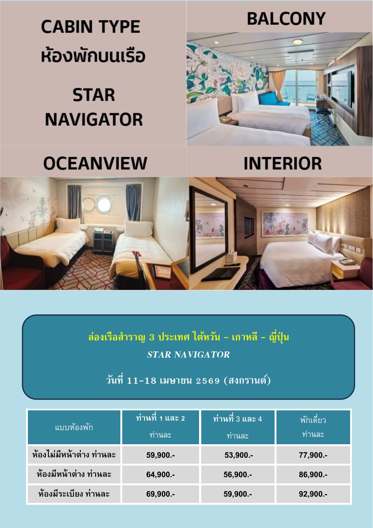 14 เม.ย.69 ท่าเรือ Jeju, ประเทศเกาหลีใต้ (เช้า/-/เย็น) |