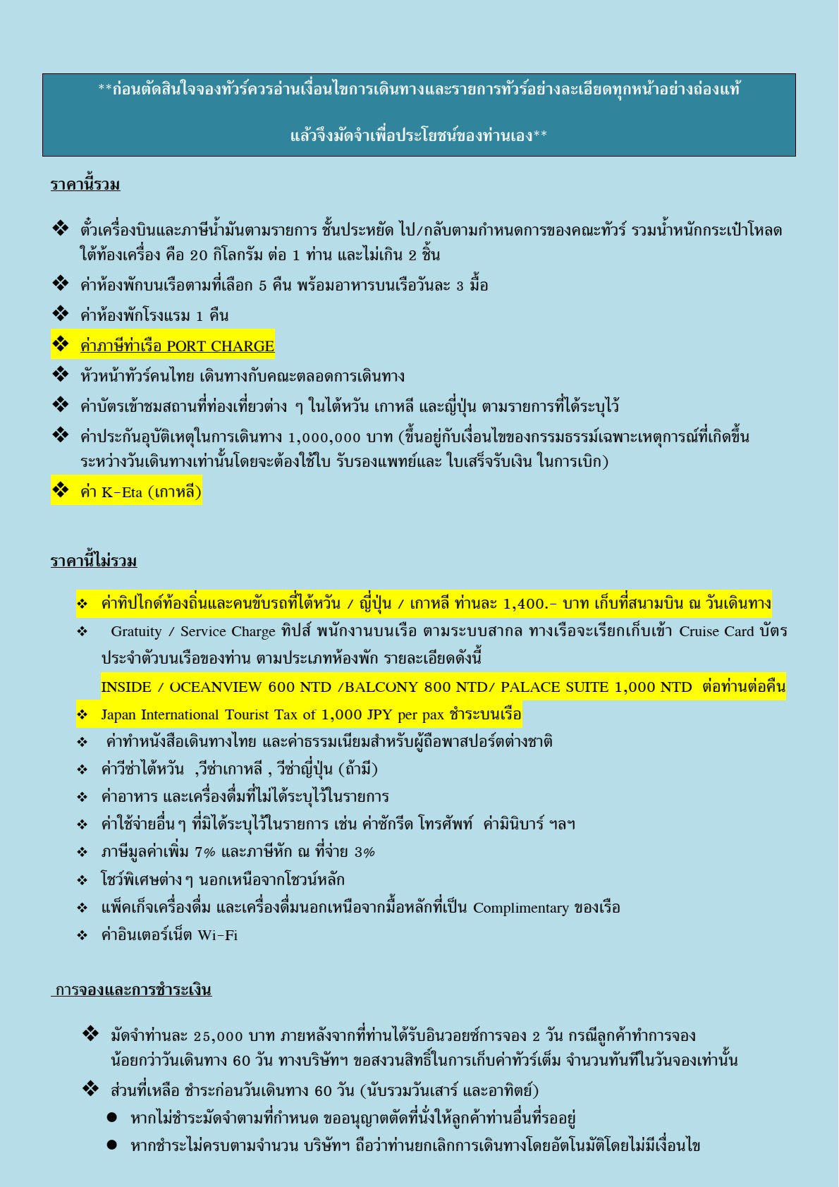 ล่องเรือสำราญ 3 ประเทศ ไต้หวัน - เกาหลี - ญี่ปุ่น